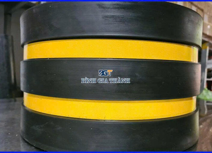Thiết kế: Sản phẩm có hình dạng cuộn hoặc tấm dài, bo tròn để ôm sát các cột trụ. Nhiều loại có thêm dải decal phản quang màu vàng-đen nổi bật, giúp người lái xe dễ dàng quan sát, đặc biệt trong điều kiện thiếu sáng hoặc ban đêm.