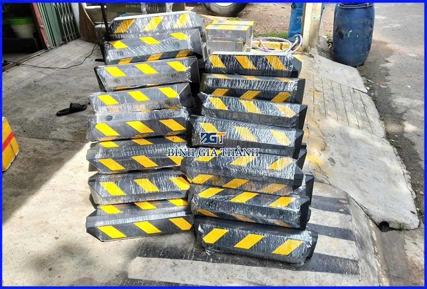 - Chất liệu: Thường được làm từ cao su tổng hợp chịu lực hoặc nhựa composite/cao su tái chế có độ bền cao, đàn hồi tốt, giúp hấp thụ va chạm và giảm thiểu hư hại cho lốp và thân xe.