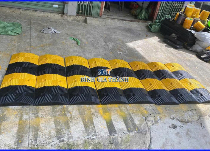 Gờ giảm tốc thường được sản xuất từ cao su tổng hợp hoặc nhựa tái chế chất lượng cao, có khả năng chịu được tải trọng nén cực lớn từ các loại xe tải nặng mà không bị biến dạng hay nứt vỡ. Độ dày của gờ thường dao động từ 30mm đến 50mm tùy theo yêu cầu giảm tốc mạnh hay nhẹ. Điểm nổi bật nhất chính là sự đan xen giữa hai màu vàng và đen – đây là quy chuẩn quốc tế về cảnh báo nguy hiểm, giúp người lái xe dễ dàng nhận diện từ xa kể cả trong điều kiện ánh sáng ban ngày.