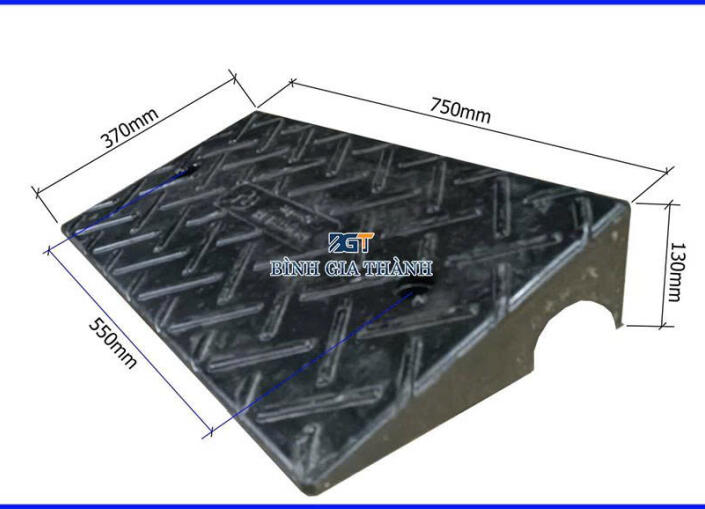 Đây là dòng sản phẩm được ưa chuộng nhất nhờ độ bền vượt trội. Được sản xuất từ cao su tái chế cường độ cao hoặc cao su tổng hợp, tấm dốc này có khả năng chịu tải trọng cực lớn, từ xe máy cho đến các dòng xe tải nặng 30-40 tấn. Đặc tính đàn hồi tự nhiên của cao su giúp triệt tiêu hoàn toàn tiếng ồn khi xe cán qua, đồng thời bảo vệ lốp xe không bị biến dạng. Bề mặt thường được đúc các vân nổi hình quả trám để tăng độ bám, chống trượt tuyệt đối ngay cả trong điều kiện mưa bão.