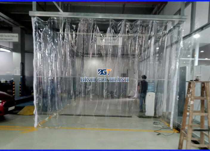 Về quy cách lắp đặt, các tấm nhựa thường có bản rộng 200mm hoặc 300mm với độ dày từ 1.5 mmđến 3.0 mm. Các dải nhựa được treo xếp chồng lên nhau (overlap) khoảng 50mm đến 100 mm trên hệ thống thanh treo và cặp thanh kẹp bằng inox hoặc thép sơn tĩnh điện. Cách lắp đặt này đảm bảo độ kín khít tuyệt đối, không tạo ra bất kỳ kẽ hở nào cho côn trùng len lỏi qua.