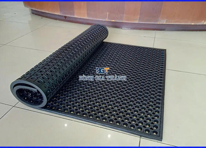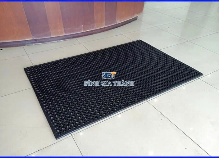Thảm dạng lỗ được thiết kế đặc biệt để giải quyết vấn đề nước đọng và trơn trượt bằng cách cho chất lỏng chảy xuyên qua.