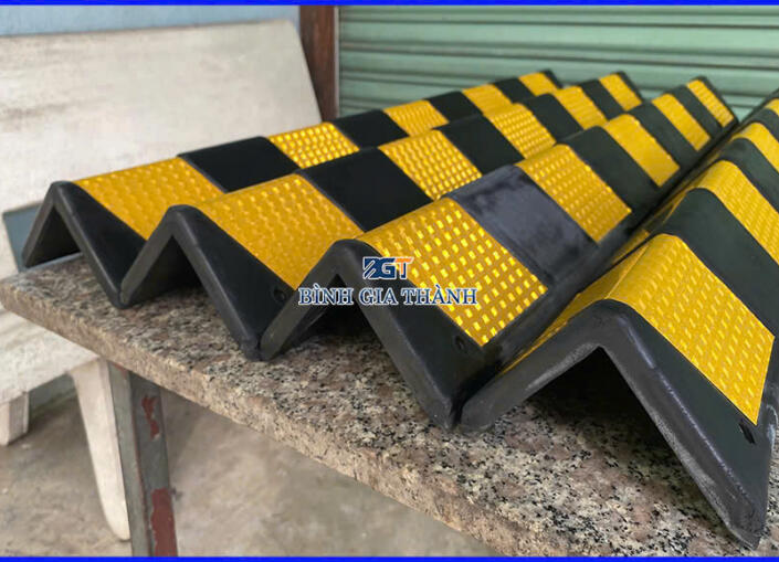 Dải Phản Quang (Reflective Strips): Tương tự như nẹp ốp cột, thanh ốp góc tường vuông thường được tích hợp các dải phản quang màu vàng hoặc trắng nổi bật, làm từ vật liệu phản xạ cao.
