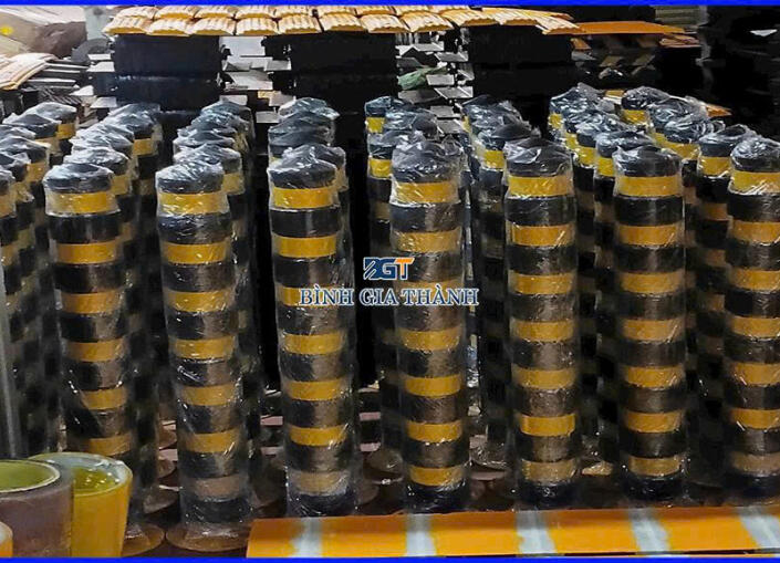 - Bọc ngoài: Một số loại được bọc lớp cao su đàn hồi (cao su đặc) hoặc nhựa composite bên ngoài. Lớp này có chức năng hấp thụ lực va chạm và giảm thiểu hư hại cho cả trụ và phương tiện va chạm.